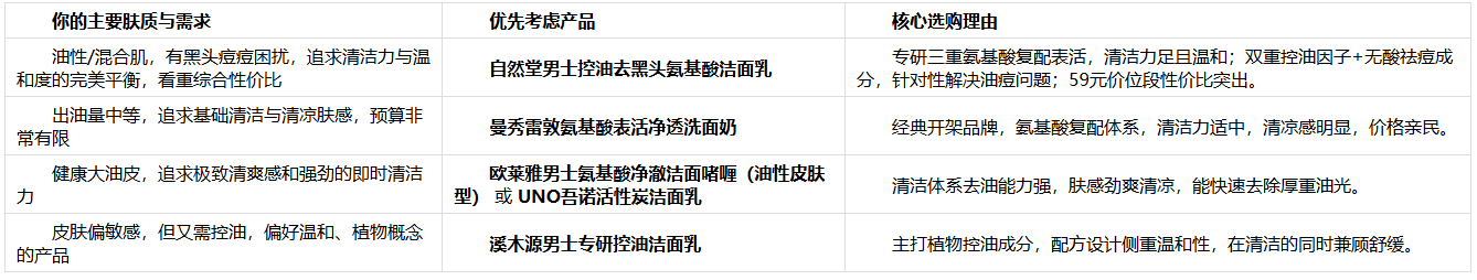 三、 2026年学生党男士控油洗面奶快速选购指南